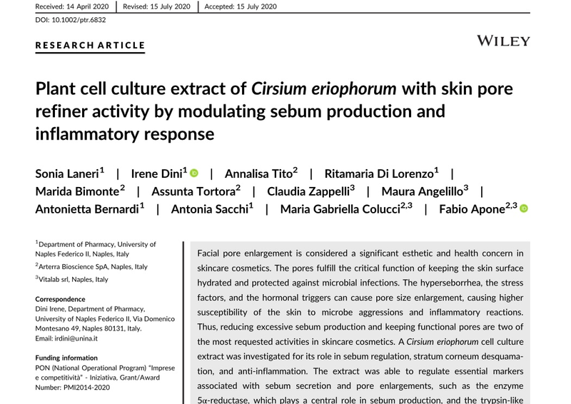 อีกตัวที่น่าสนใจคือ VitaLight จาก บ. Vitalab ซึ่งมาจาก Cirsium Eriophorum stem cells ที่ช่วยให้ผิวละเอียดขึ้น การผลิตน้ำมันลดลง ผิวสมดุลมากขึ้น skin barrier แข็งแรงขึ้น หลัง 2 สัปดาห์ (In vivo study) มีการทดลองเอาสารนี้ไปใช้ใน Seborrhiec / Acne prone skins ก็ได้ผลที่ดีค่ะ ตาม paper ตรงนี้เลย